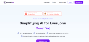 Beeyond AI is an all-in-one productivity suite that offers over 50 AI tools to simplify content creation, image editing, voice transcription, document interaction, and marketing. Designed for individuals, freelancers, and small businesses, it provides a seamless way to generate, manage, and organize various types of digital content in one place.