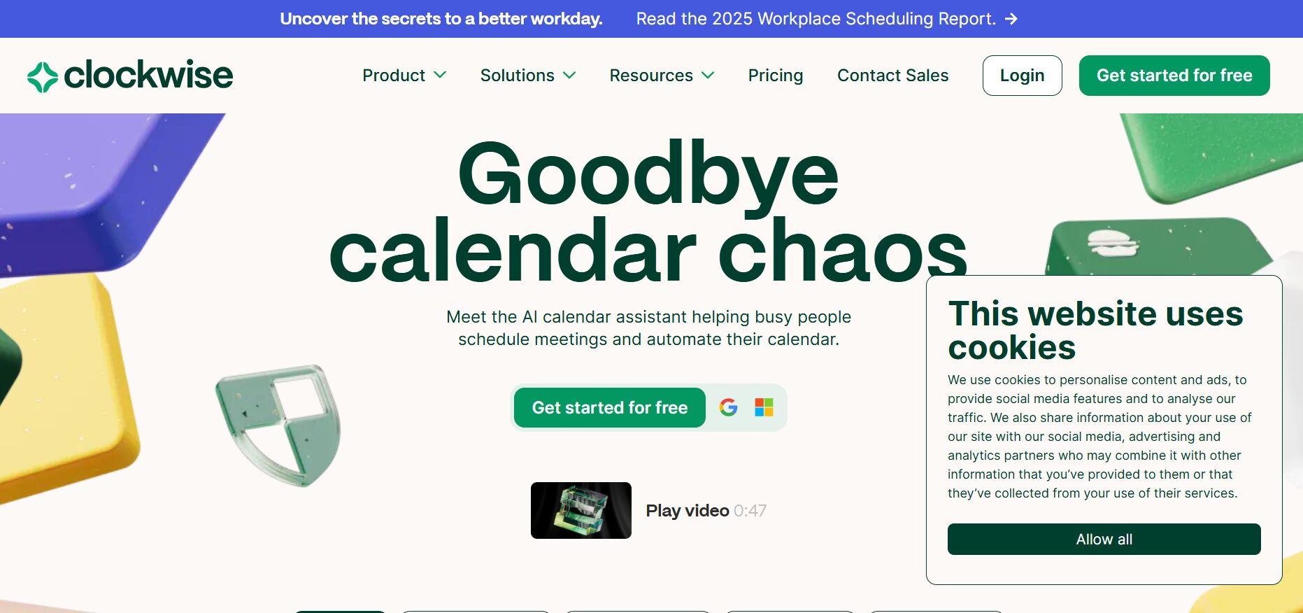 Clockwise is an AI-powered calendar optimization tool that automatically organizes your workday to maximize focus time, reduce meeting overload, and improve team productivity. It integrates with your existing calendar (like Google Calendar) to intelligently reschedule meetings and prioritize deep work.