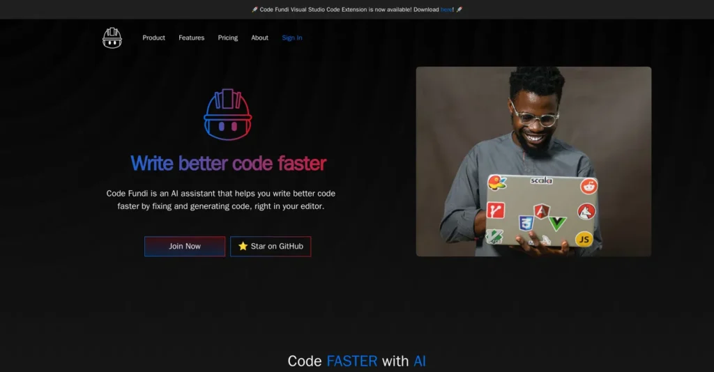 Code Fundi offers tailored AI features for software development, enabling users to write cleaner, faster, and more efficient code within their existing tools.