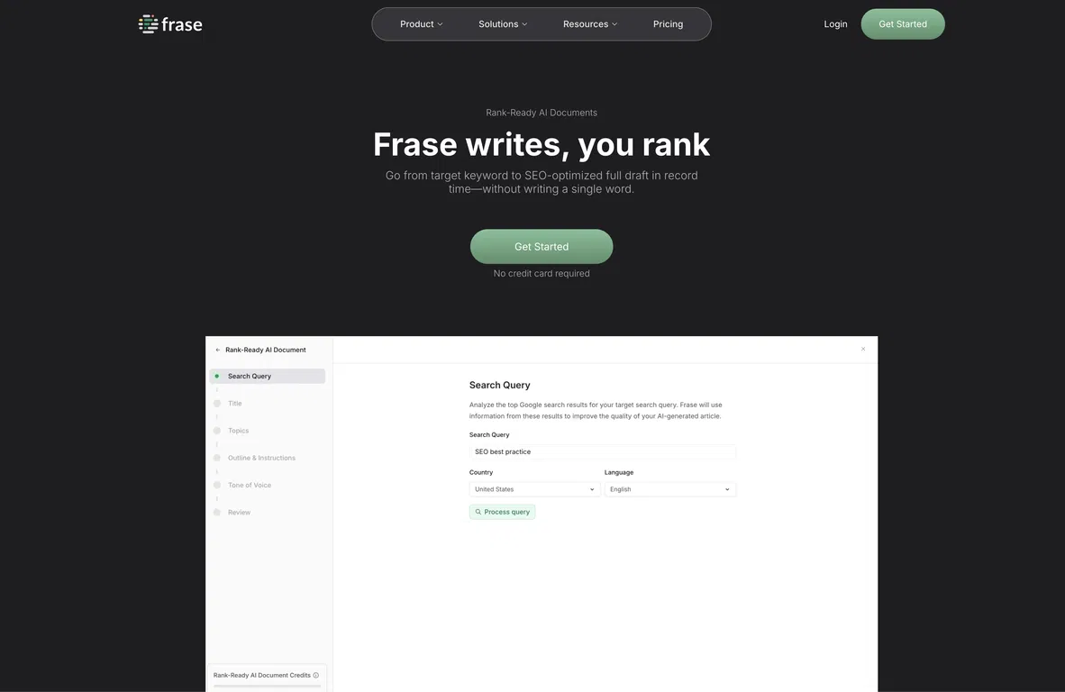 Frase.io is an AI content creation and SEO platform that generates briefs using SERP insights, crafts optimized drafts, and provides real-time SEO scoring—all within a collaborative workspace.