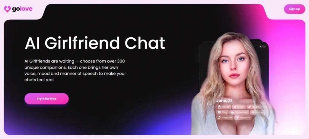 GoLove AI blends romantic realism with full NSFW freedom in a secure, anonymous environment. Its emotionally intelligent AI companions, persistent memory, and rich roleplay mechanics make it ideal for users seeking meaningful and sensual digital relationships.
