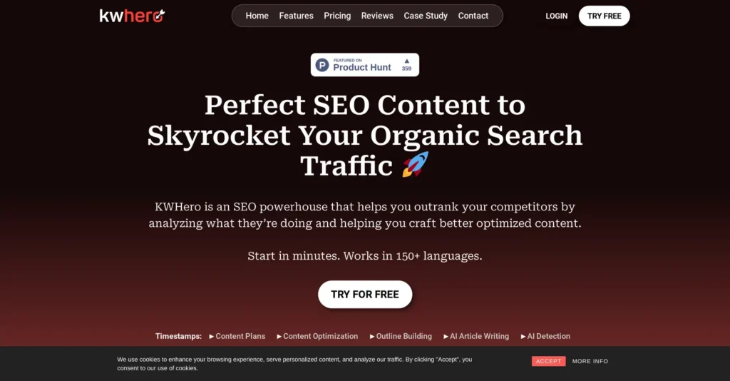 KWHero stands out by fully integrating the SEO content workflow under one AI-powered platform. From keyword discovery to outline creation, internal linking, and SEO tracking—across a global reach—users benefit from streamlined, collaborative workflows that prioritize topical authority and content performance.