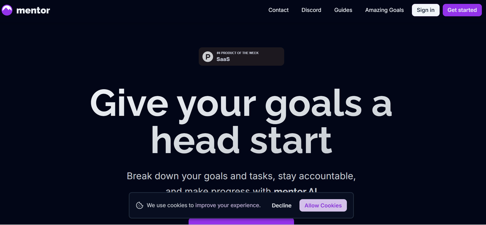 Mentor is an AI-powered productivity coach designed to help users set, track, and achieve their personal and professional goals. It combines task management, habit tracking, and intelligent reminders to keep you focused and moving forward with customized plans and insights.