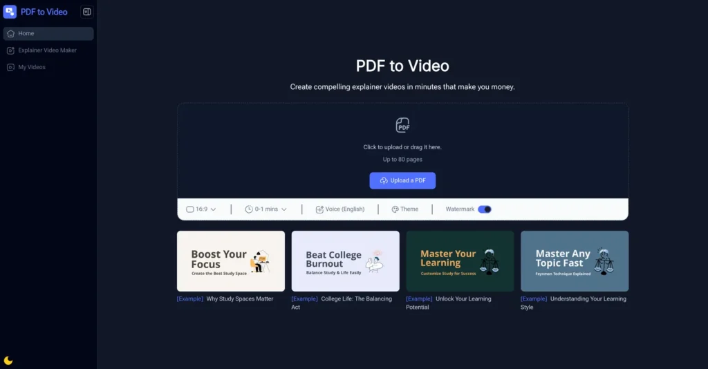 PDF to Video AI simplifies content repurposing by turning passive documents into impactful multimedia. It’s the easiest way to convert static PDFs into professional-looking videos — no video editing experience required.