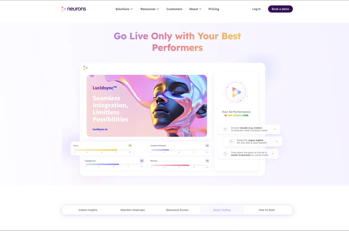 • Objective predictions for brand assets—logos, CTAs, faces—without running costly studies.