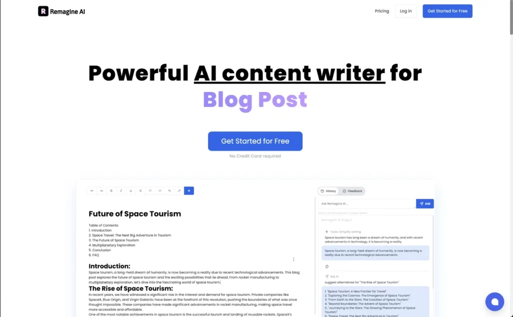 RemagineAI is a powerful AI tool designed to streamline and enhance productivity through artificial intelligence. Whether you’re a marketer, writer, entrepreneur, or content creator, it provides a suite of features tailored to your creative and operational needs.