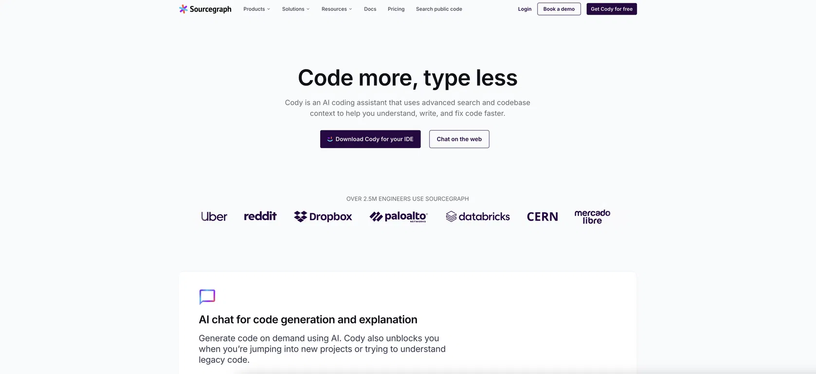Sourcegraph Cody offers tailored AI features for software development, enabling users to write cleaner, faster, and more efficient code within their existing tools.