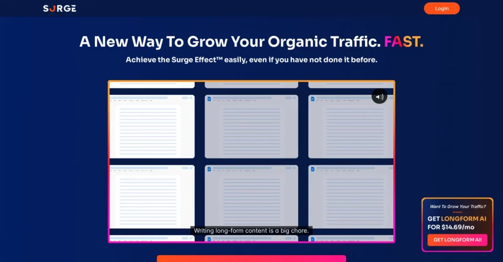 Surgegraph is an AI SEO and content optimization suite offering features like topic research, AI-powered writing assistance, keyword tracking, and automatic internal linking suggestions.