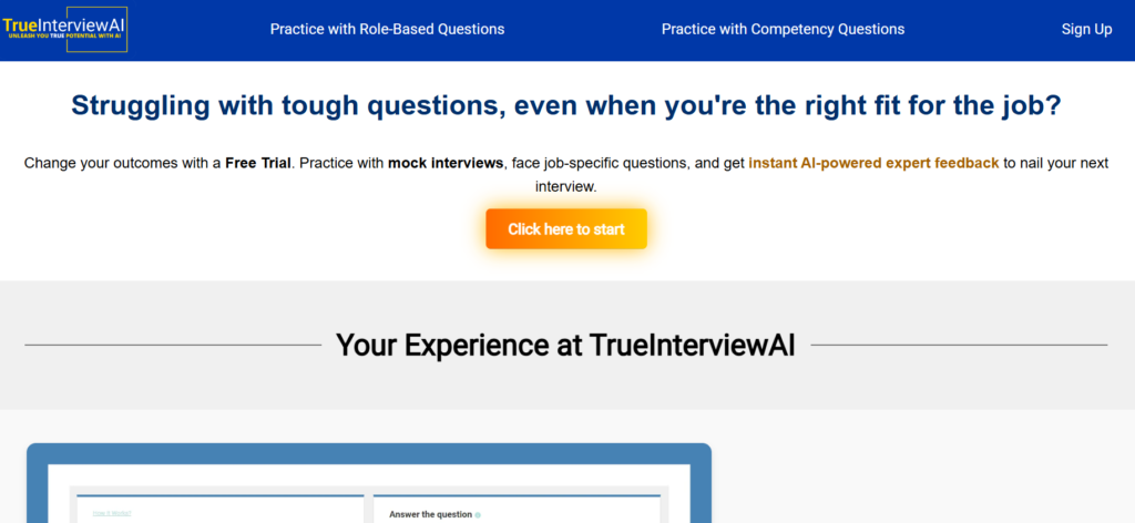 TrueInterviewAI combines conversational AI with detailed performance analytics in one tool. It doesn’t just ask questions—it evaluates your delivery, tone, and content to help you improve specific areas of your interviewing technique. It’s like having a personal coach anytime you need practice.