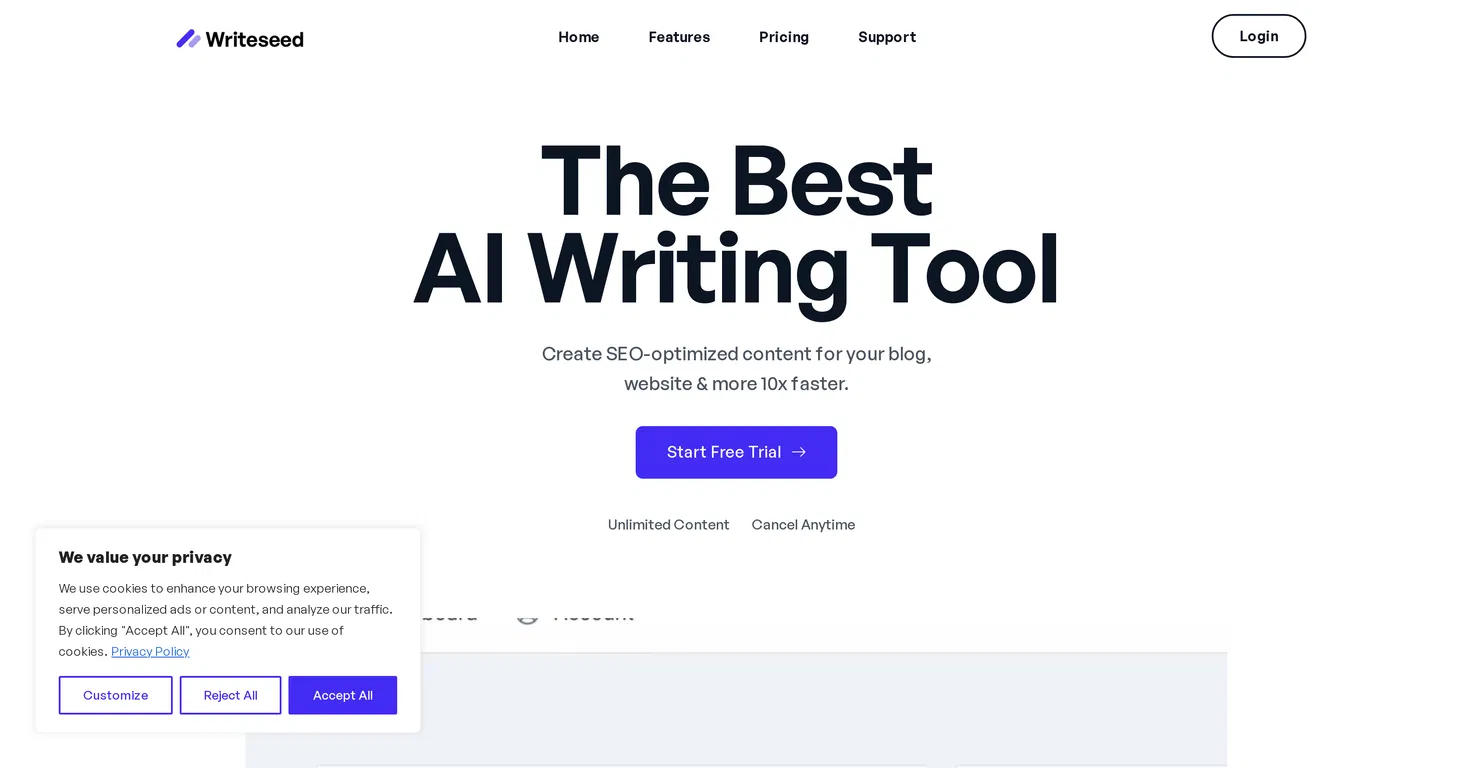 Writeseed is an AI writing platform focused on fast, SEO-ready long-form content. It helps teams turn keywords into well-structured articles and landing pages with on-page best practices built in.